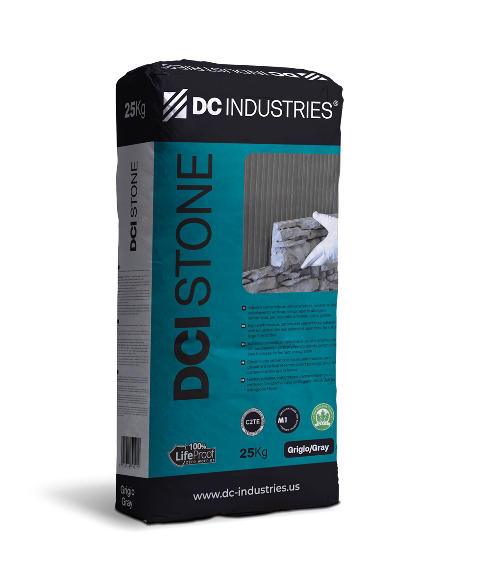 DCI STONE est un adhésif cimentaire (C), amélioré (2), antidérapant (T) de classe C2TE, à temps ouvert prolongé (E). DCI STONE peut être utilisé sur les murs et les sols pour des installations en lits minces et moyens de carrelage et de matériaux en pierre.